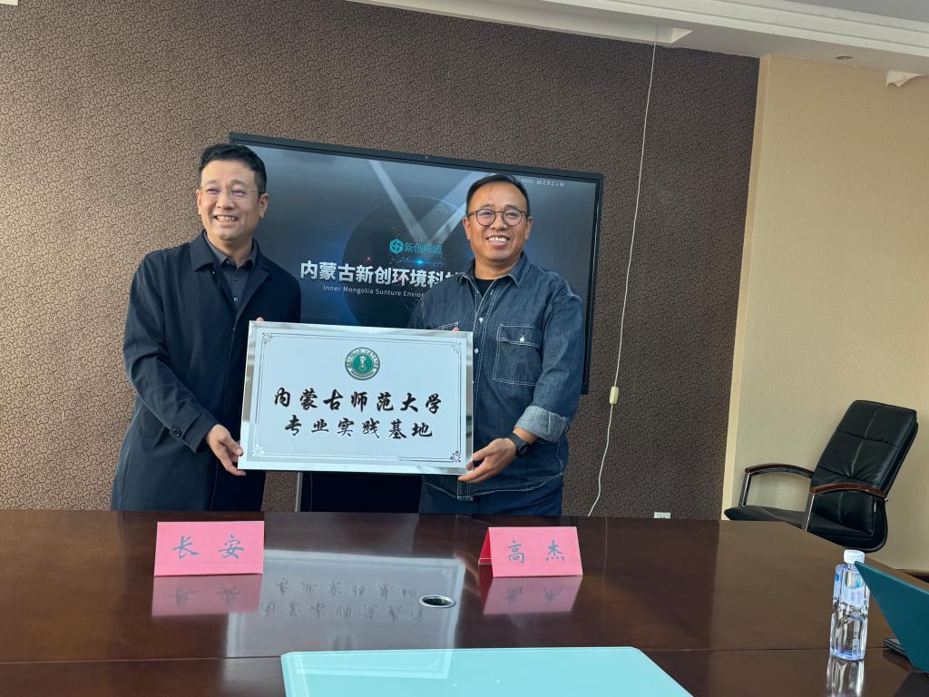 2024 年 10 月 9 日上午,十大买球官方网站与内蒙古新创环境科技有限公司于该公司会议室成功举办校企合作共建专业实践基地揭牌仪式。买球赛十大平台科研处副处长周丹丹、十大买球官方网站院长长安、买球赛十大平台教务处实践教学科董振华、地理系主任阿荣、副系主任郭恩亮与斯琴朝克图,以及内蒙古新创环境科技有限公司总经理高杰、行政副总马晶晶、总工张玮、东联循环(子公司)总经理王林、美成生态(子公司)总经理范志勇、众元测试(子公司)总经理郝文强出席了此次揭牌仪式。