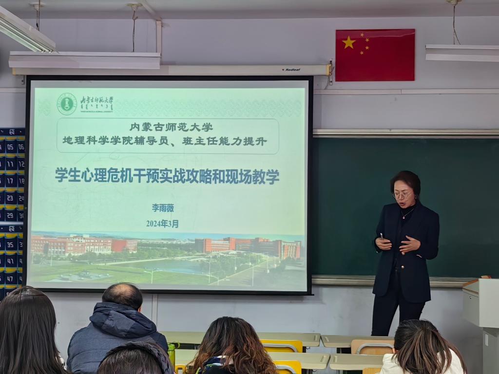 为全面落实教育部等多部门联合发布的《全面加强和改进新时代学生心理健康工作专项行动计划(2023—2025年)》,提高辅导员、班主任对学生心理危机的识别和干预意识,提升学院学生心理危机干预工作水平,完善心理危机干预,健全预警体系,优化协作机制,创建平安校园,3月7日下午14:30,十大买球官方网站组织全体班主任、专职辅导员等40余人在赛罕校区田楼122举办了“十大买球官方网站辅导员、班主任能力提升——学生心理危机干预实战攻略和现场教学”培训班,培训由学院党委书记李雨薇同志主讲。