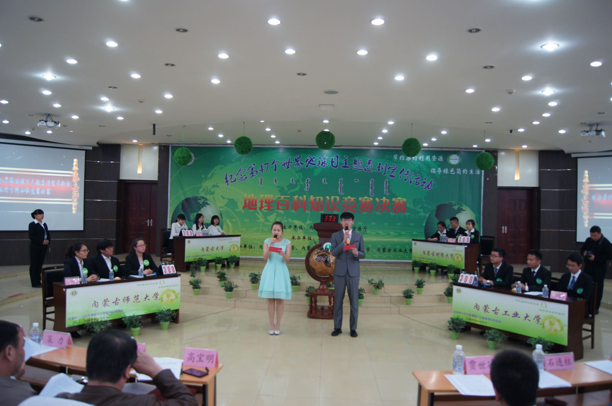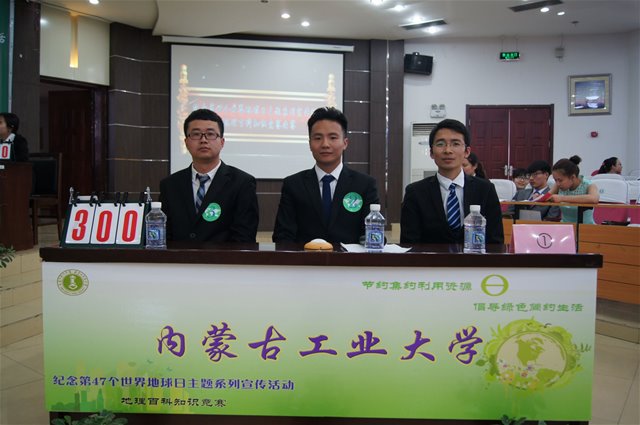 4月20日下午,十大买球官方网站联合自治区三所高校在买球赛十大平台盛乐校区图书馆一楼报告厅举办“地理百科知识竞赛决赛”。校团委副书记贾世琦、学生处副处长石连柱以及国土资源厅有关领导参加了本次活动。