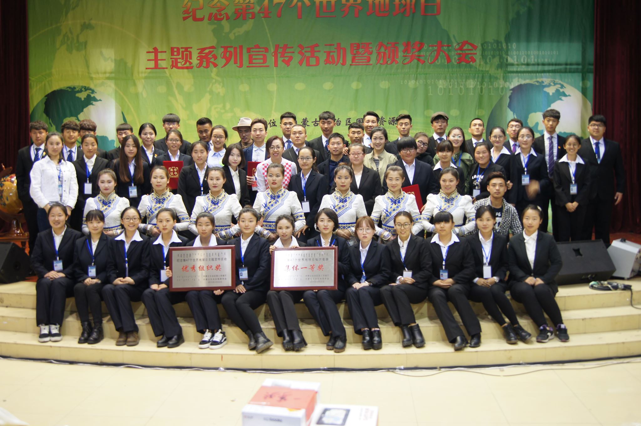 4月22日上午, “纪念第47个世界地球日主题系列宣传活动暨颁奖大会”在买球赛十大平台盛乐校区举行。买球赛十大平台副校长刘九万、内蒙古地质调查院副院长曹志忠、内蒙古地质调查院党委副书记徐宗培、学生处处长斯钦、学生处副处长石连柱、十大买球官方网站院长海春兴、十大买球官方网站副院长张裕凤、十大买球官方网站党总支副书记李雨薇、内蒙古大学生命科学学院党总支书记张慧荣、内蒙古大学环境与资源学院党总支书记李笑春、内蒙古工业大学研究生工作部学生管理办公室主任唐正魁、内蒙古财经大学资源与环境经济学院党总支书记郑之新等领导和嘉宾莅临本校参加活动。本次活动中买球赛十大平台学生代表孙宇雯宣读了本次活动的倡议书,倡导广大同学积极了解生态文明,学习国土资源科学知识,节约集约利用资源,倡导绿色简约生活。整场演讲比赛在来自四个高校八位学生代表的精彩演讲中达到高潮,演讲结束后刘新生同志为本次演讲比赛做了精彩点评,随后进行颁奖环节,买球赛十大平台荣获“地理百科知识竞赛”的冠军,荣获第二名的是内蒙古工业大学,第三名分别由内蒙古财经大学与内蒙古大学摘得,在演讲比赛中买球赛十大平台赵延同学获得第一名。随着颁奖环节的结束整场活动正式结束,第47个世界地球日主题系列活动完美落幕。在演讲比赛开始前在图书馆二楼,通过悬挂宣传横幅、展示专题展板、组织签名、发放宣传资料和环保袋等多种方式对第47个地球日进行了积极的宣传。