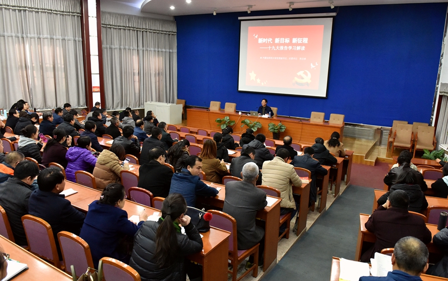 报告以党的十八大以来所取得的重大科技成就为切入点,从新时代的五个定位、新时代的主要矛盾、新时代的历史使命、新时代中国特色社会主义思想的八个明确、新时代坚持和发展中国特色社会主义的十四条基本方略等方面对党的十九大报告进行了学习和解读。