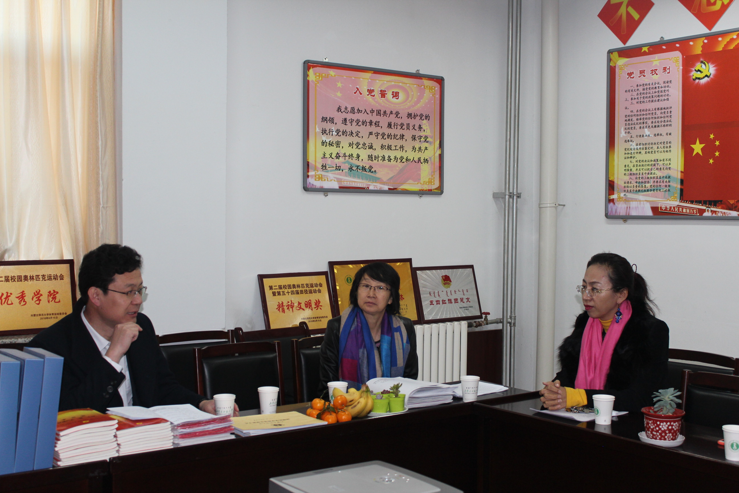 2016年12月6日上午9点,学生就业指导处王志强副处长、学生处资助管理科徐连娣老师、赵相国老师、李婧老师一行来到十大买球官网进行本学年学生工作考核指导工作。十大买球官网张裕凤副书记(主持工作)、李雨薇副书记,胡日查老师,姜亚维老师参加了此次考核工作。李雨薇副书记代表学院进行了汇报总结,主要分为三个部分:学院工作的特色和亮点、存在的困难以及未来工作的规划。汇报结束后,学生处领导对十大买球官网学生工作给予了充分的肯定,并提出了改进和指导意见。