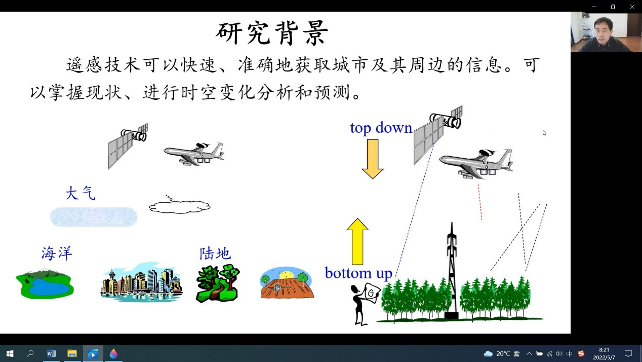 哈斯巴干研究员从研究背景、研究内容、数据介绍、研究结果四个方面进行了介绍,其中数据主要有遥感数据、GIS数据和人口统计数据,运用数据对东京的城市内部结构、地表温度、人口密度与碳卫星数据相结合进行了研究,让我们对每种类型的数据、研究方法等有了深刻的认识。在会议最后,哈斯巴干研究员与参会师生进行了互动交流。