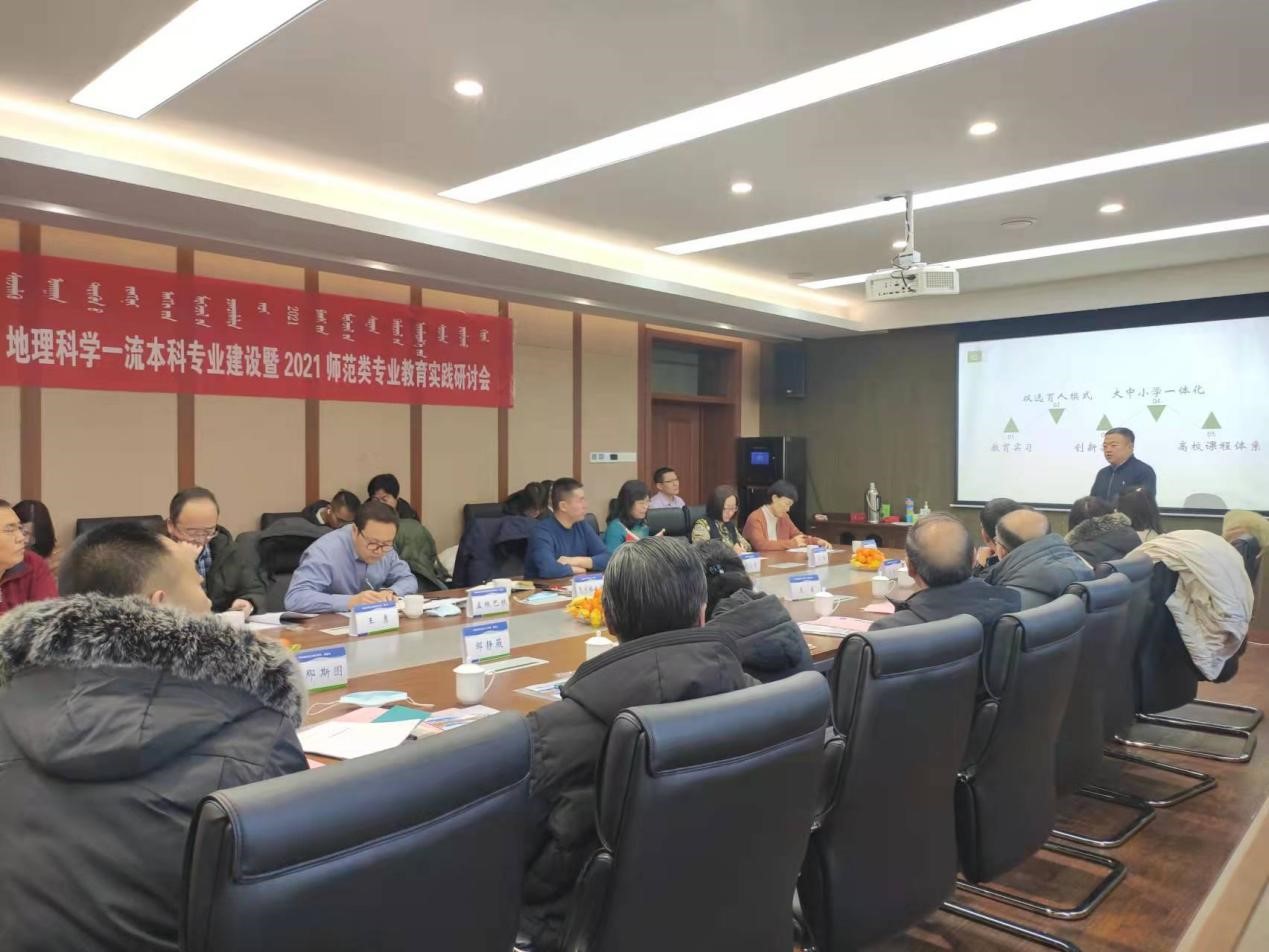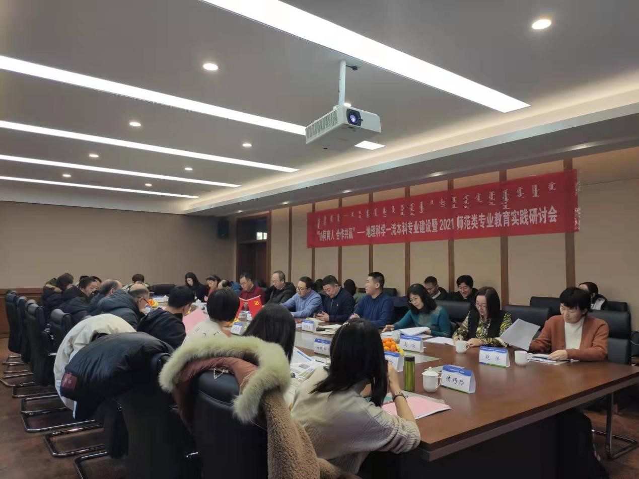 为进一步贯彻落实党的十九大精神,培养高素质教师队伍,提高师范类专业人才培养质量,按照国家教育事业发展“十四五”规划工作要求,根据教育部印发《普通高等学校师范类专业认证实施办法(暂行)》等文件精神,2021年12月30日,十大买球官方网站教工第一党支部在赛罕校区文史楼2号会议室召开了“协同育人 合作共赢”——地理科学一流本科专业建设暨2021师范类专业教育实践研讨会。会议由地科院教工第一党支部萨楚拉副院长主持,教务处副处长乌兰格日乐、教师发展与教学评估中心孟根巴根教授,呼和浩特市部分中学的领导和教师代表,教工第一党支部书记乌敦和党员老师、师范认证工作组成员参加了本次会议。