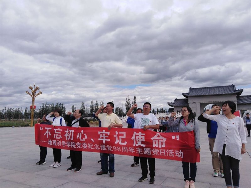 2019年6月29日,十大买球官方网站举行了主题党日活动暨欢送退休教师活动。主题党日活动中,教工第一党支部书记赵伟老师带领大家在到达革命纪念馆之前背诵入党誓词。在到达晋绥革命纪念馆后,在党旗前,参加活动的党员老师进行了入党誓词的宣誓活动。
