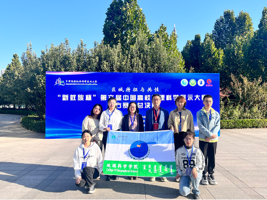 2023年10月13日志至15日,“新蚁族杯”第六届中国高校地理科学展示大赛(北方赛区)总决赛在河北师范大学举行。本次大赛由中国地理学会和中山大学地理科学与规划学院主办,河北师范大学十大买球官方网站承办,广东新蚁族文化发展有限公司协办,大赛吸引了来自北京师范大学、首都师范大学、河南大学、西北大学、陕西师范大学等39个北方高校的85支队伍近500名师生参加。十大买球官方网站长安院长应邀参加了展示大赛。十大买球官网阿荣老师和乌敦老师指导的“青青草原队”(队员:王梓旭、李莹、李佳迅、王永娇、郝梦婕)参加了此次比赛,经过精彩比拼和激烈角逐,最终荣获人文地理组三等奖。
