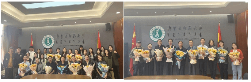 在荣休仪式上,与会教师为海山教授献上了鲜花和礼物,并向海山教授致以美好的祝福。教师代表在发言中回顾了与海山教授在工作、生活中共同度过的难忘瞬间,桩桩点滴小事,犹如一把钥匙,开启了往昔那厚重的回忆之门,画面温情感人,令人不禁动容。学院的部分毕业生更是专程赶来,只为向海山教授表达他们内心的感谢与祝愿。而那些未能亲临现场的学生,也通过视频的方式为海山教授送上了诚挚的祝福。