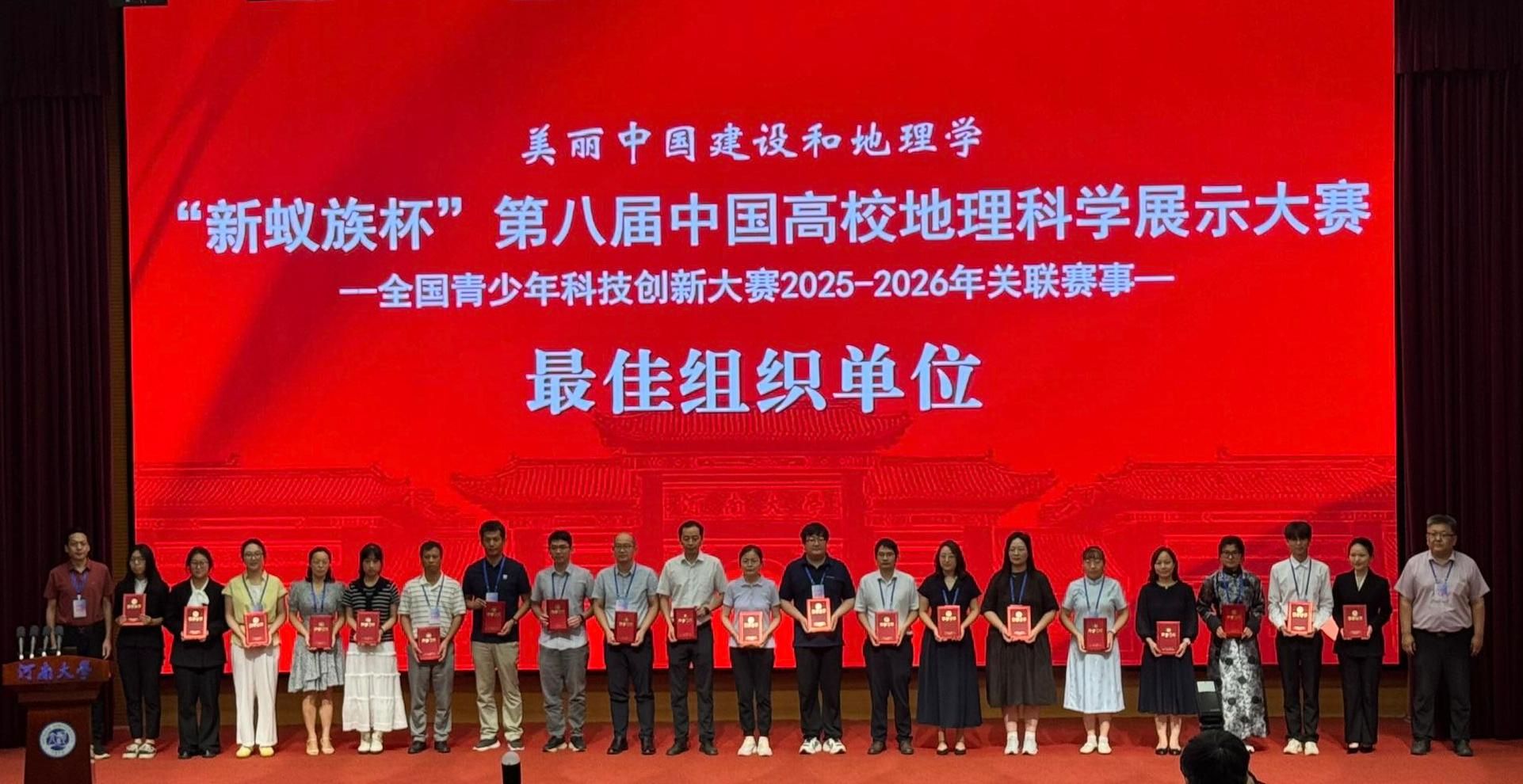 2025年7月25日至27日,“新蚁族杯”第八届中国高校地理科学展示大赛全国总决赛在河南大学(开封)成功举办。十大买球官网“绿原守望者队”参与人文地理组别展示。经过多轮激烈角逐,最终斩获人文地理团体一等奖。与此同时,十大买球官网凭借优异的组织表现,荣获“最佳组织单位”称号。