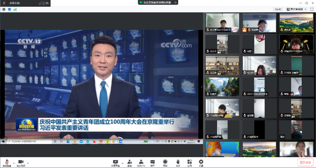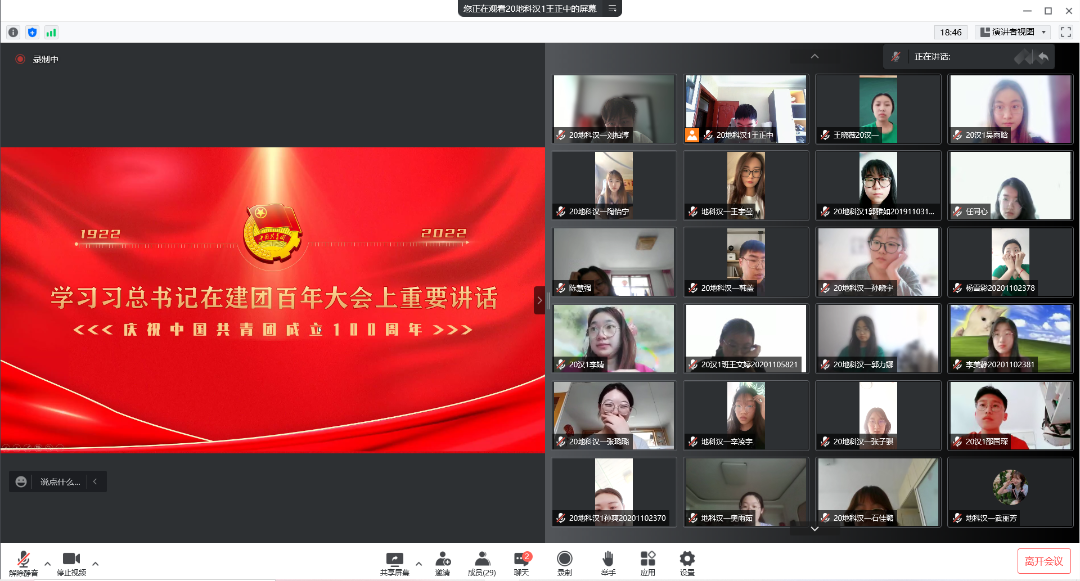 5月10日上午,庆祝中国共产主义青年团成立100周年大会在北京人民大会堂隆重举行。作为新时代的青年,十大买球官网组织全体同学学习了习总书记在建团百年大会上的重要讲话。通过本次主题活动,十大买球官网青年学子深受鼓舞,坚定了用汗水投身祖国建设的理想信念,努力学习先进科学文化知识,切实担负起中国特色社会主义接班人的重任。